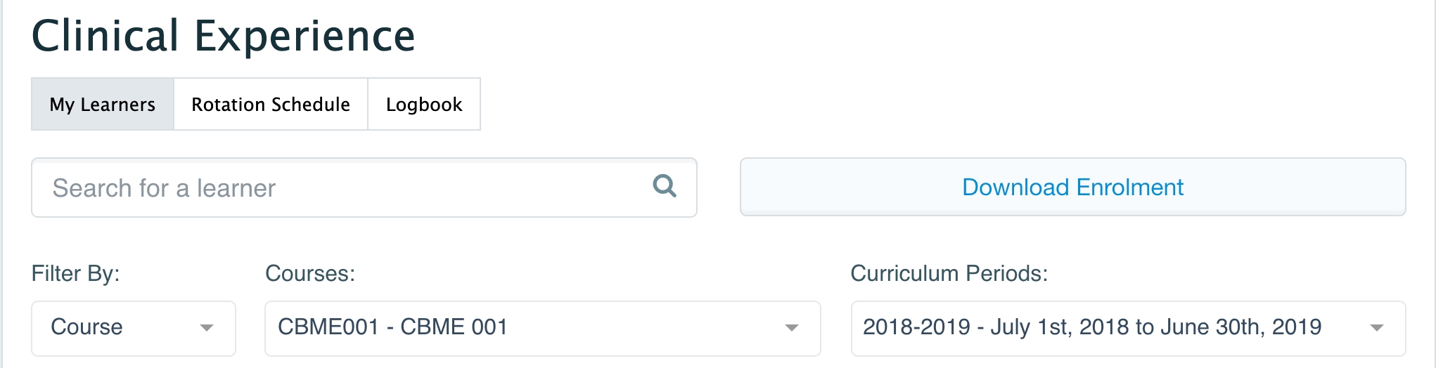 You will land on the My Learners tab but in case you don't, click the 'My Learners' tab under the Clinical Experiences heading.